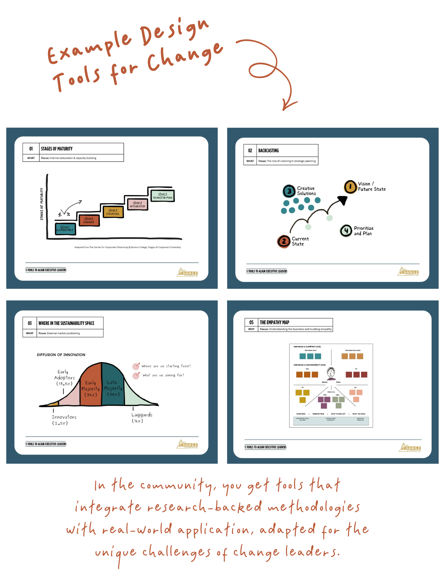 These tools draw on fields including systems thinking, design thinking, human-centered design, strategic communication, behavior change science, creative problem-solving, and organizational change management—adapted for the unique challenges faced by impact leaders.